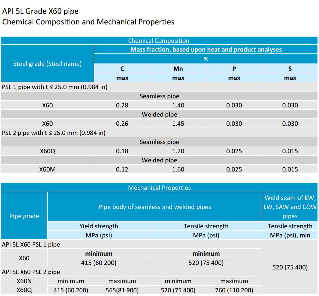 On the other hand, X60 PSL 1 and PSL 2 the minimum strength values are no different but PSL2 limits the maximum strength value. According to API 5L 46th edition 2018.