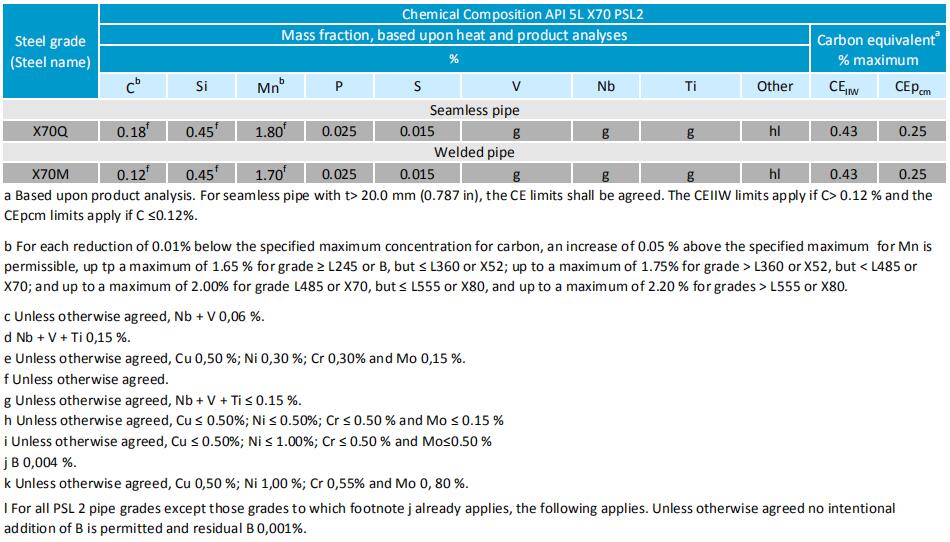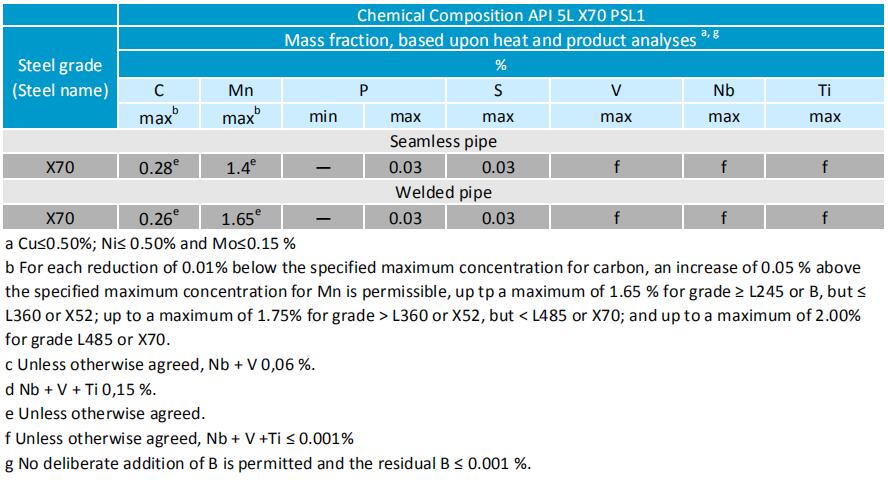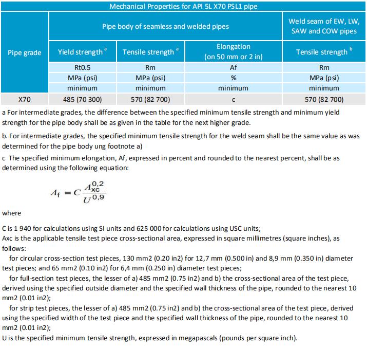 For API 5L X70 PSL1