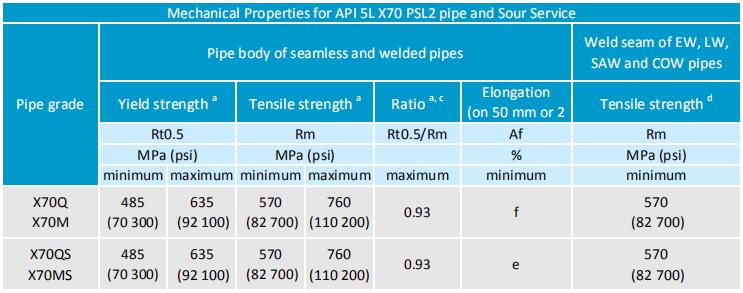 For API 5L X70 PSL2
