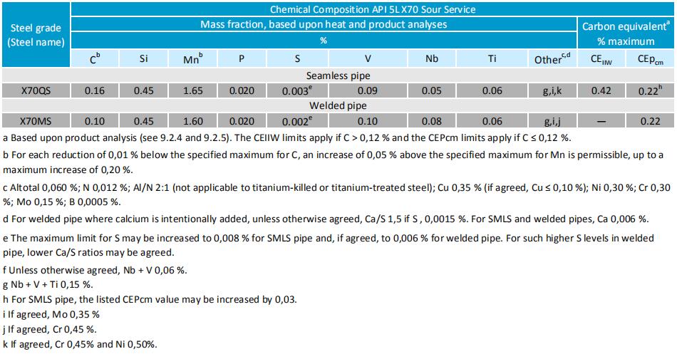 It contains two product specification levels PSL1, PSL2. (Including the material for sour services uses in PSL2)