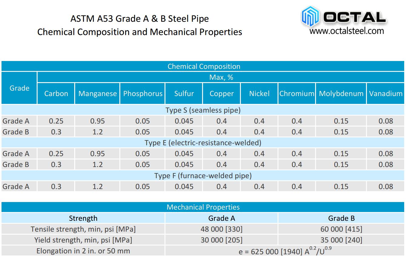 ASTM A53 is the standard specification for the carbon steel pipe in seamless, welded, and zinc-coated galvanized pipes. Covers the dimensions ranges from OD 10.3 mm (1/8 inch) to 660 mm (26 inch).