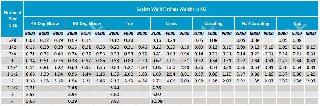 When placing a request for socket weld fittings, it is important to specify the OD (outside diameter) dimensions and the pressure requirements (or thickness schedule). Socket weld fittings have pressure ratings that are typically expressed in class 3000, class 6000, and class 9000.