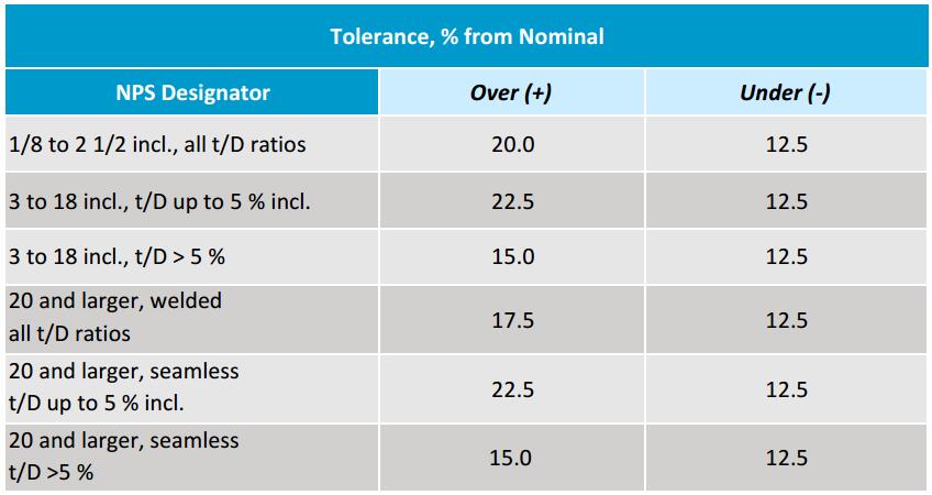 Permitted Tolerance in Wall Thickness in ASTM A312
