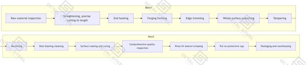 • Process: The end of the precisely cut rod is locally heated to a forging temperature (approx. 1200°C) in an induction heater. It is then placed into a die and upset and formed under immense pressure, creating a shoulder larger in diameter than the rod body.