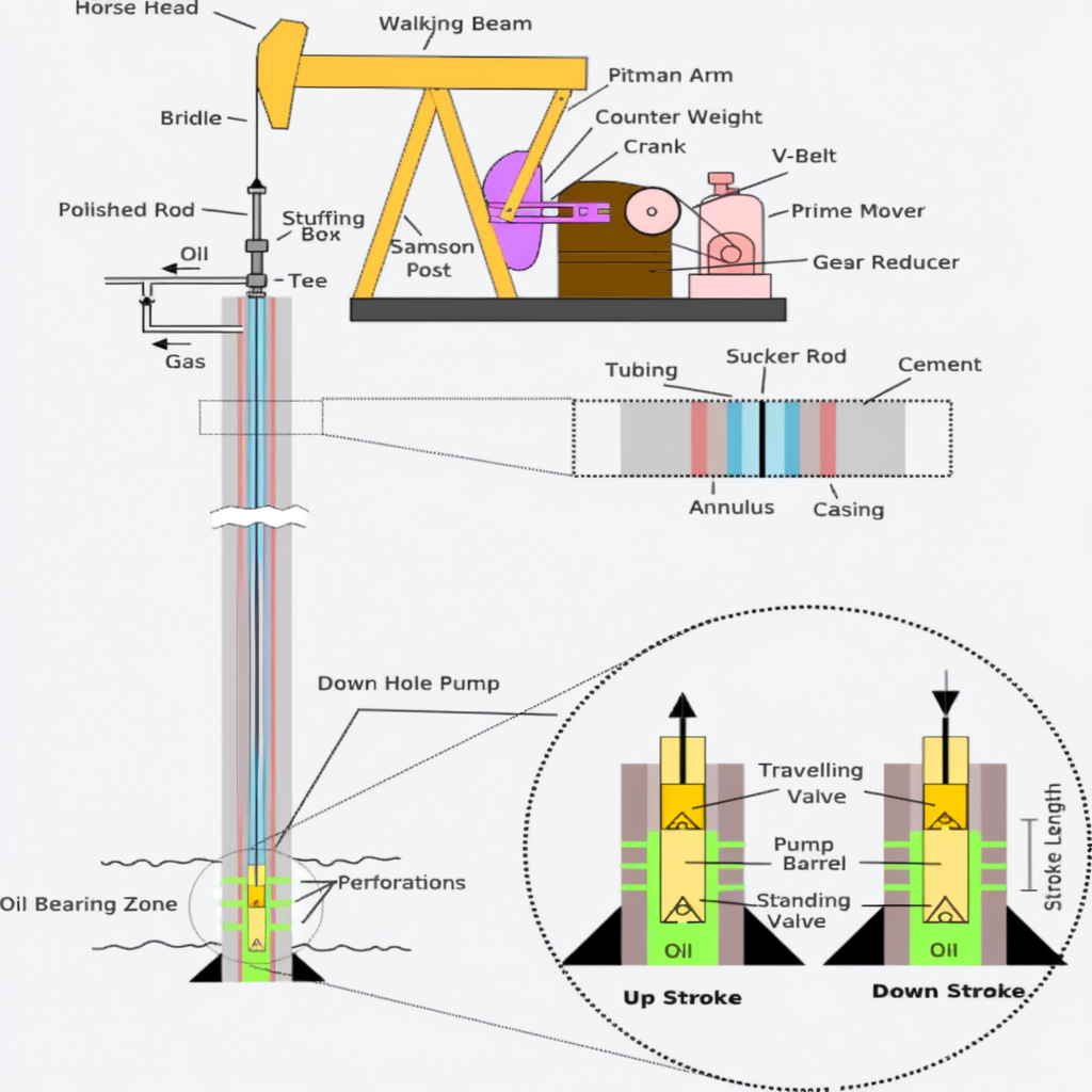 Pumping Mechanism: In a typical setup, the sucker rod is attached to a pumping unit, such as a pumpjack, which reciprocates the rods up and down to create the necessary pumping action. This action helps lift the oil or gas to the surface.
