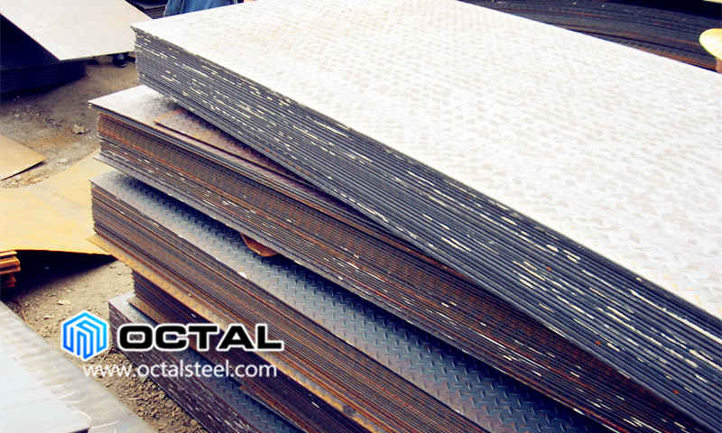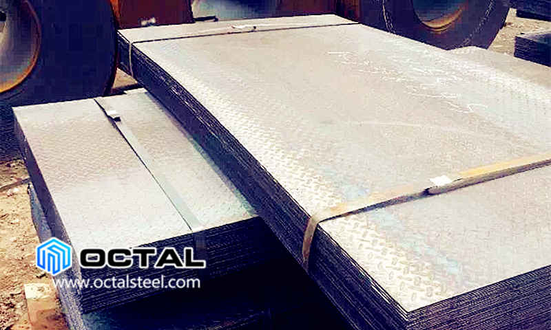 Chequered steel plate, material standard ASTM A36, carbon steel, thickness 6mm, width 1000mm, length 2000mm. Quantity 260MT.