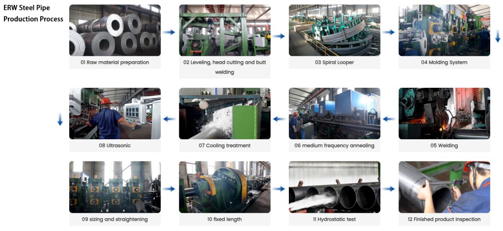 | Welding | Solid-state high-frequency welder (200–800 kW) + impedance roller | Full-penetration weld at speeds up to 120 m/min, qualified to PSL2 |