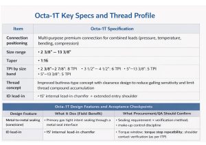 In practical terms, OCTA-VT is used when the buyer is first defining whether the project needs a premium connection for gas-tight sealing, combined-load resistance, flush ID requirements, or higher running reliability than standard API threads can provide. Once these conditions are confirmed, the detailed OCTA connection family can be selected accordingly.