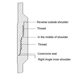 3.Negative-angle torque shoulder providing a controlled torque stop to improve make-up accuracy, reduce circumferential stress at the connection, and improve performance under compression + external pressure and bending/torque combinations.