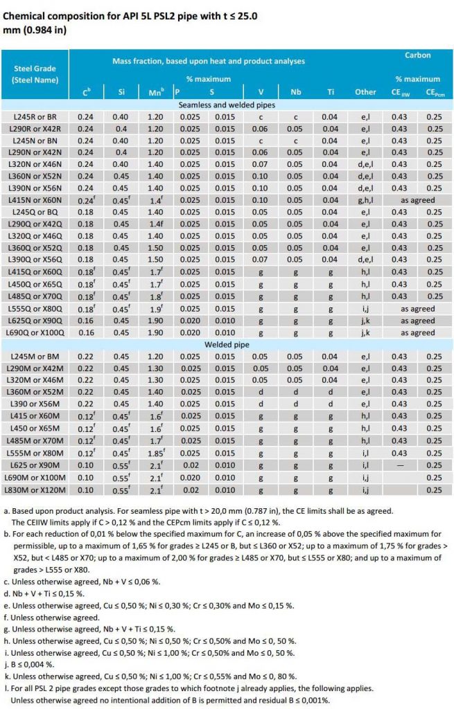 API 5L X46 (L320) PSL2 the maximum chemical content is different than PSL1; As well as the mechanical strength, is more strictly.
