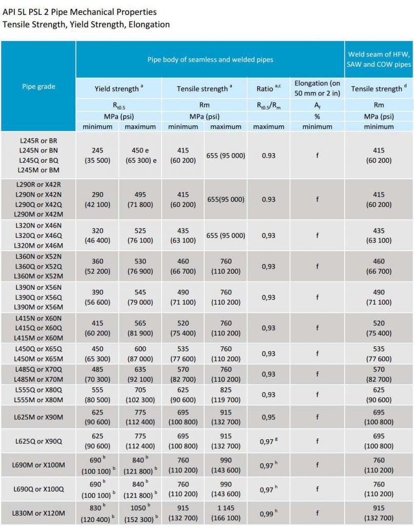 API 5L Pipe PSL1 mechanical properties tensile and yield strength